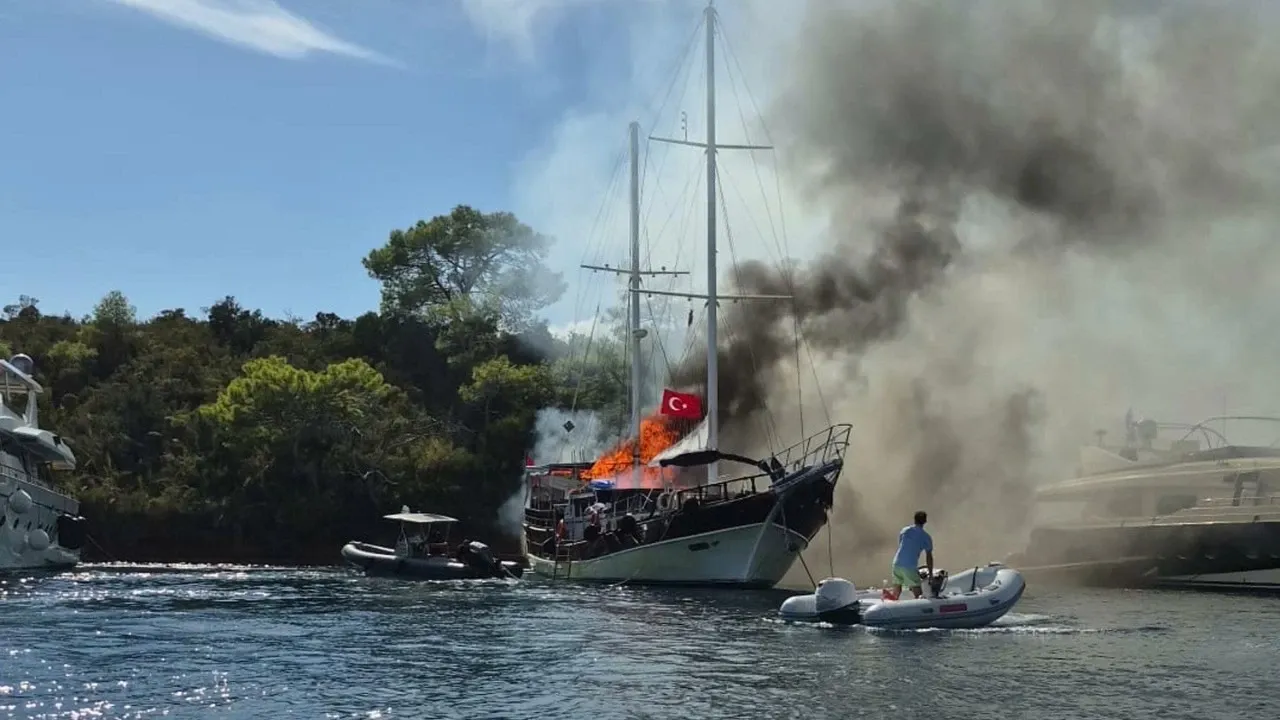 Muğla'nın Fethiye ilçesi, Yassıada açıklarındaki bir gulet teknede yangın çıktı. Sahil Güvenlik Komutanlığı ve Kıyı Emniyeti ekiplerinin alevlere müdahalesi sürüyor.