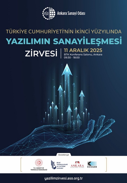 Ankara Sanayi Odası, sanayinin dijital dönüşümüne katkı sağlamak amacıyla yazılım sektörünün tüm paydaşlarını “Türkiye Cumhuriyeti'nin 2. Yüzyılında Yazılımın Sanayileşmesi Zirvesi”nde buluşturuyor. Zirvede, yazılımın sanayiye entegrasyonu ve sektörün geleceği kapsamlı şekilde ele alınacak.
