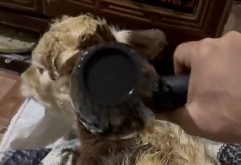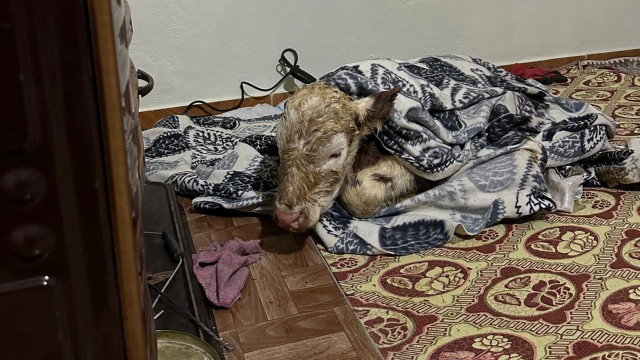 Kulp ilçesinin kırsal Şenyayla Mahallesi'nde dünyaya gelen buzağı, soğuktan etkilenince sahibi tarafından eve getirildi. Buzağı, soba kenarında ısıtılıp, fön makinesiyle kurutuldu. O anlar, cep telefonu kamerasıyla kaydedildi.