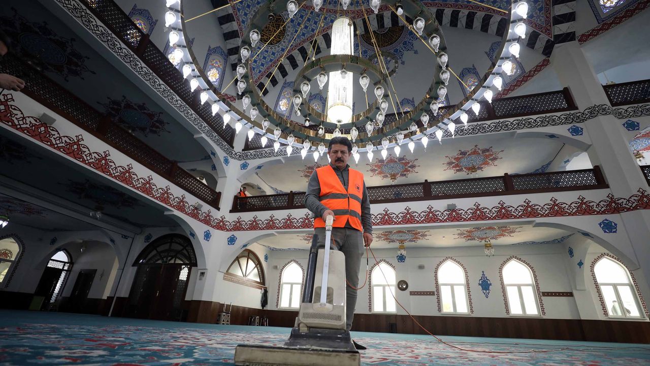 Vatandaşların ibadetlerini daha sağlıklı ve huzurlu bir ortamda yapabilmesi için sahaya inen ekipler, halılarından camlarına, abdesthanelerinden ayakkabılıklara kadar camilerin her noktasını elden geçirdi.